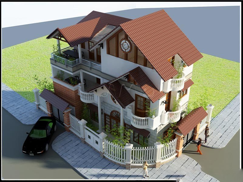• Mái nhà: Mái Thái (ngói màu xanh đậm, đỏ sẫm) hoặc mái bê tông, độ dốc 30-35 độ, chống nóng và thoát nước tốt.